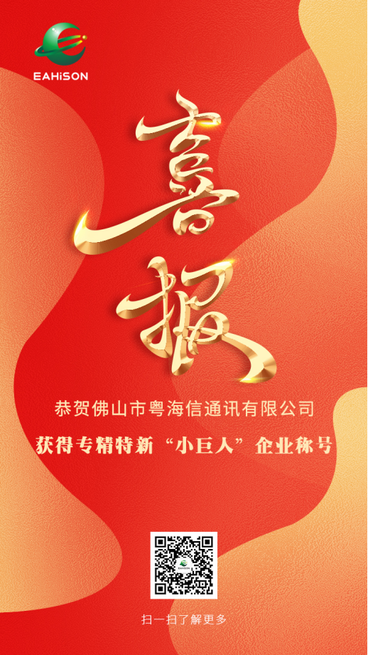 近日,广东省工业和信息化厅发布了国家级第五批专精特新“小巨人”企业公示名单。其中,佛山市粤海信通讯有限公司成功入选。